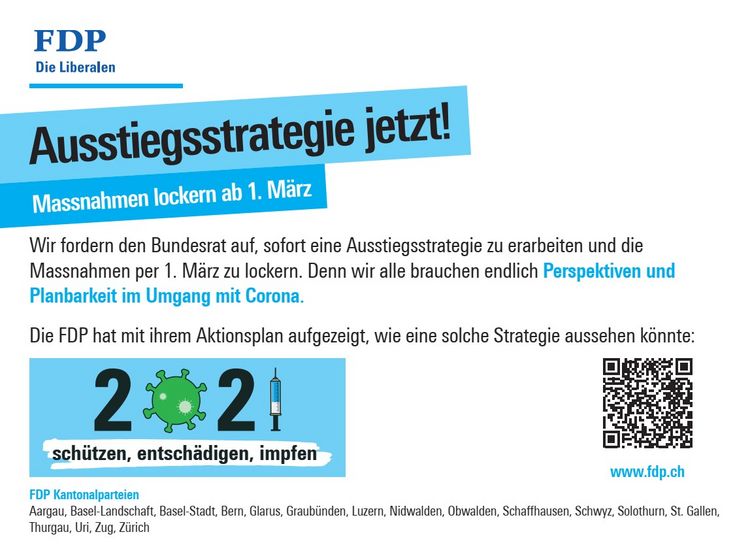 Zum 100-Tage-Aktionsplan der FDP: https://www.fdp.ch/aktuell/coronavirus/schuetzen-entschaedigen-impfen